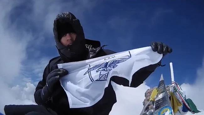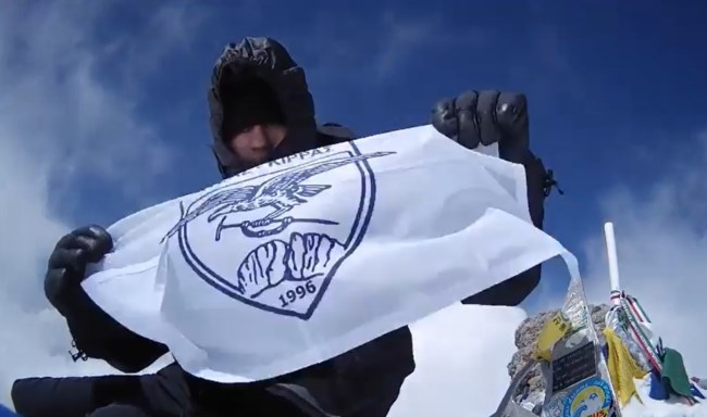 οροσειρά του Καυκάσου, σηκώνοντας την σημαία του Συλλόγου.